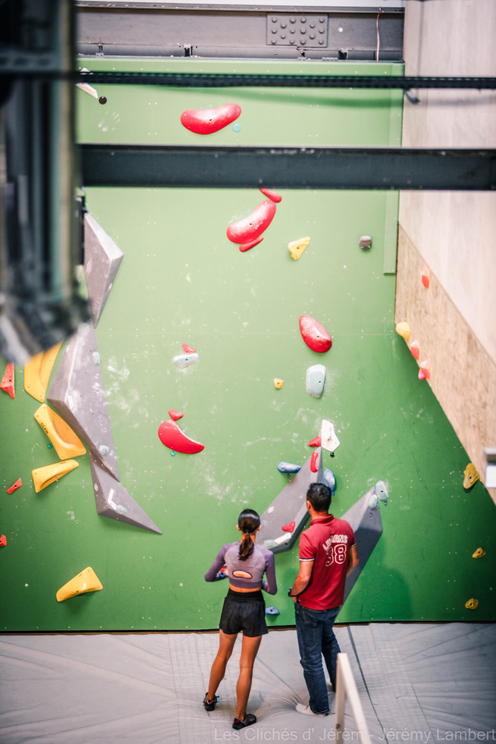 L’escalade de bloc consiste à grimper des murs de faible hauteur sans corde, avec des tapis de sécurité.